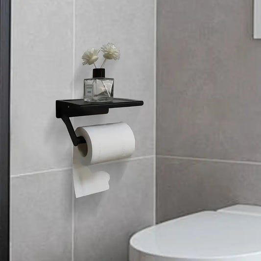 Modern Stainless Steel Wall Mount Paper Towel Holder with Storage Shelf – Black