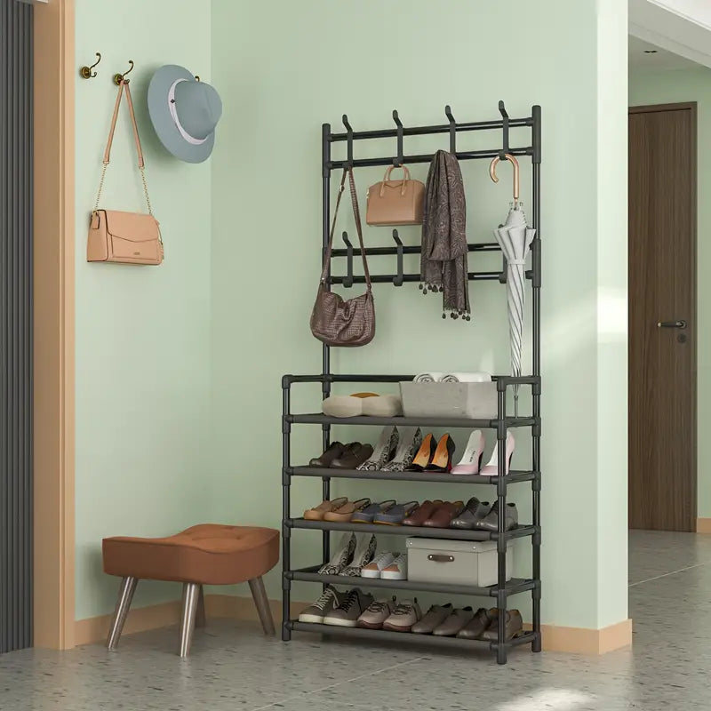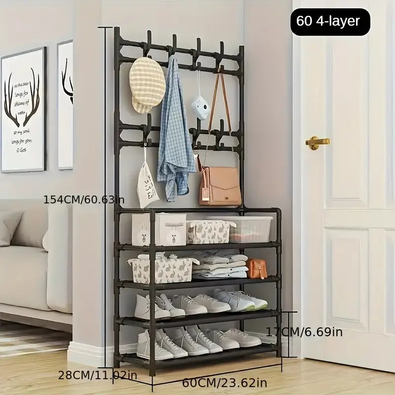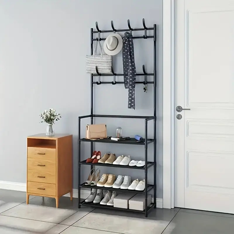 Multi-Layer Metal Shoe Rack with 4/5 Storage Shelves & 8 Hooks