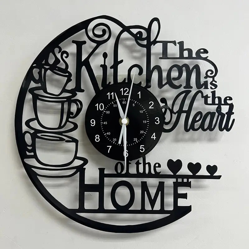 Add charm and character to your walls with this DDZIO Vintage Kitchen-Themed Wall Clock. Designed with a retro café vibe and unique vinyl record-inspired look, it’s both a functional timepiece and a statement décor piece. Perfect for kitchens, coffee shops, or any space that deserves a touch of nostalgic style.